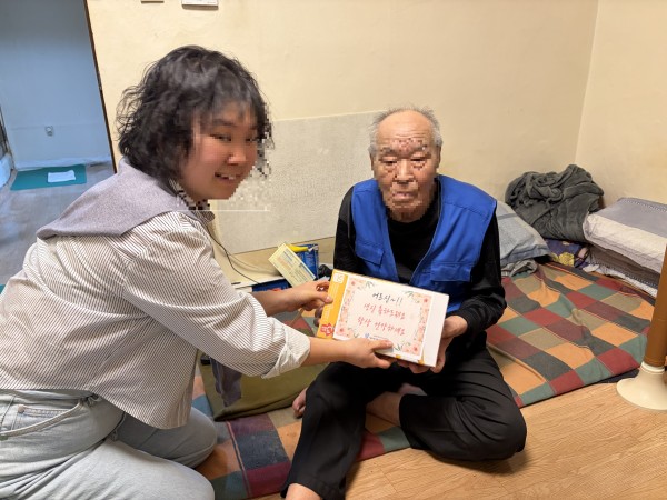 거동이 어려운 어르신들은 사회복지사가 직접 방문하여 선물을 전달해드렸습니다.