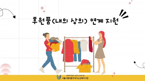 [재가노인지원서비스] 2026년 3월 서울시재가노인복지협회(내의 상의) 후원 페이지 정보 작성자 은천노인복지회 작성일26-04-06 11:34 조회91회 댓글0건 관련링크 다음글 목록 답변 본문 '서울시재가노인복지협회'로부터 내의 상의를 후원받았으며,올 겨울 이용자들이 따듯하게 보내실 수 있도록 전달드렸습니다. 다음글 목록 답변