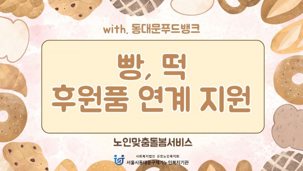 [노인맞춤돌봄서비스] 2026년 1~3월 후원품 연계 지원 페이지 정보 작성자 은천노인복지회 작성일26-04-09 16:17 조회20회 댓글0건 관련링크 이전글 다음글 목록 답변 본문 '동대문푸드뱅크'로부터 매주 월요일 빵을 후원 받고 있으며, 생원지원사를 통해 어르신들께 빵을 전달해드리고 있습니다. 이전글 다음글 목록 답변